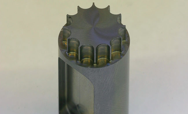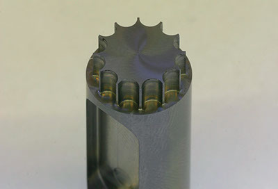 Mittels dem Startlocherodieren bohren wir "Startlöcher" von 0,3 bis 3 mm über eine Höhe von bis zu 710 mm. Besonders geeignet ist dieses Verfahren für gehärteten Stahl sowie alle elektrisch leitenden Metalle.