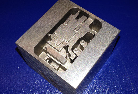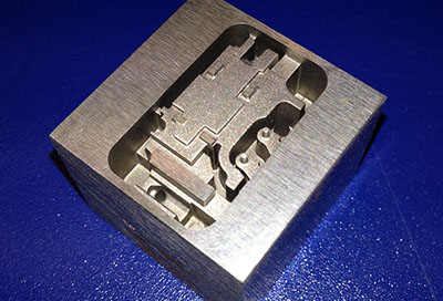 Auf unseren 3 Senkerodieranlagen erodieren wir 3D-Geometrien aus selbstgefertigten oder beigestellten Senkerodier-Elektroden z.B. aus Graphit oder Kupfer. Wir arbeiten diese mitunter recht komplexen Formen 1:1 in Werkstücke aus unterschiedlichen Materialien für den Werkzeug- und Sondermaschinenbau ein.